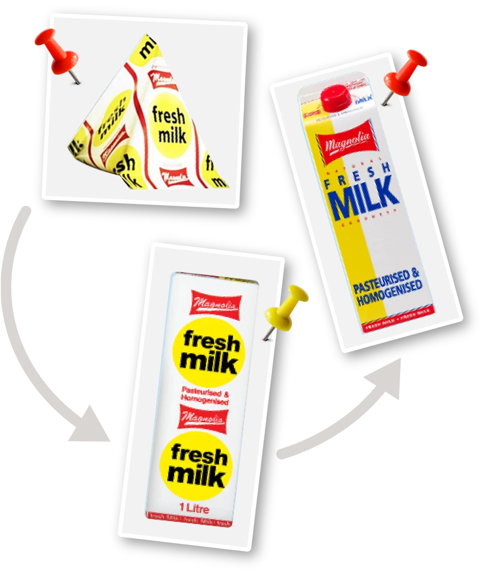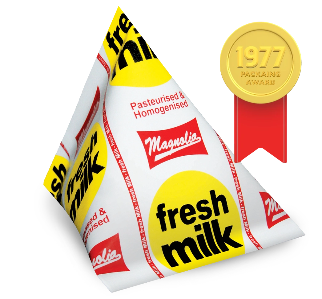 In the late 50s, Magnolia’s pyramid shaped Tetra Pak lived up to its slogan, “The Peak in quality in every household”, and rose to become an icon. It contained pasteurised and homogenised milk, and was available in 2 flavours: plain and creamy.